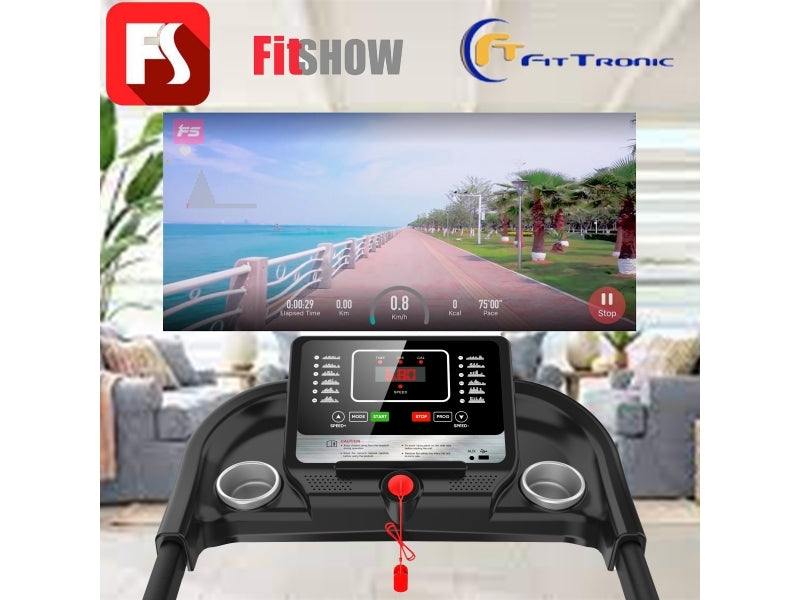 Banda de alergat electrica FitTronic J1000 dispune de posibilitatea de conectare prin bluetooth cu aplicatia FitShow, aplicatie ce o gasiti atat in App store cat si Googleplay.