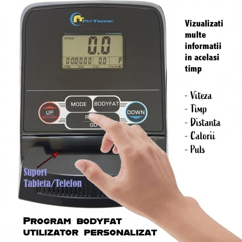 Bicicleta magnetica FiTtronic 510B are o costructie rezistenta ce suporta pana la 110 kg, greutatea utilizatorului. Datorita seii confortabile, va puteti bucura de un antrenament placut chiar la dumneavoastra acasa. Nu ocupa spatiu mult, iar picioarele fixe si late ofera o stabilitate cat mai buna. In timpul antrenamentul puteti asculta muzica dorita direct de pe telefon sau tableta, intrucat bicicleta este prevazuta cu suport pentru astfel de dispozitive.