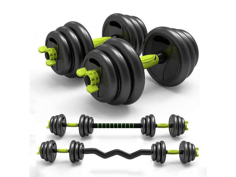 Setul este compus din 16 discuri de greutati diferite, doua bare de gantera, bara de conectare dreapta, bara de conectare curbata, bara pentru roata de abdomen, doua manere kettlebell, o baza kettlebell si 4 sigurante pentru prinderea discurilor pe bara.